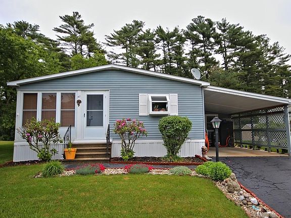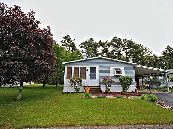 One of the Best Homes in sought after Waterview Village in Carver, an over 55 community. Very well maintained double wide manufactured home. 2 bedrooms 2 full baths, open floor plan with living room, dining room and kitchen, central AC throughout plus an additional sunroom with hardwood floors (heat and AC also) Attractive gleaming wood floors throughout, new wall to wall carpet in each bedroom, laundry room and large closets throughout. 12 x12 deck overlooks the professionally landscaped back yard with patio and shed the property abuts the woods for privacy. Active community building, public beach across the street at Johns Pond. Park fee includes water, sewer, taxes, weekly rubbish removal and maintenance of the common areas. Upgrades by current owner brand new hot water tank, natural gas, flooring, patio, fresh paint, unique light fixtures, new roof on shed. All appliances included.