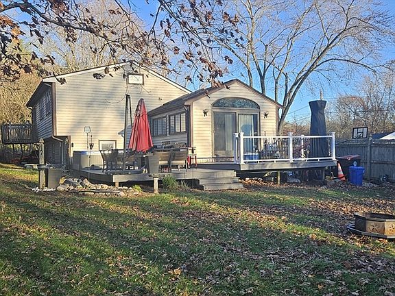 Situated at the end of a quiet cul-de-sac in a lovely neighborhood, this beautifully updated front-to-back split offers comfort, charm, and an abundance of living space. Step inside into the family room with cathedral ceilings, skylights, and a slider overlooking the private fenced yard with multiple decks. The home features hardwood floors throughout, a recently remodeled kitchen at the heart of the home with quartz countertops, gas cooking, and modern updates that make it both functional and stylish.A large living room with a fireplace and bay window provides yet another comfortable space to gather. Upstairs, you’ll find the bedrooms with large walking closets and a renovated full bathroom. The finished basement adds even more versatility, featuring a family room, 1 bedroom and an additional bathroom that is framed and ready to be finished according to your vision. With its updates, generous layout, and prime location, this home is ready for its next chapter. Roof replaced in 2019.
