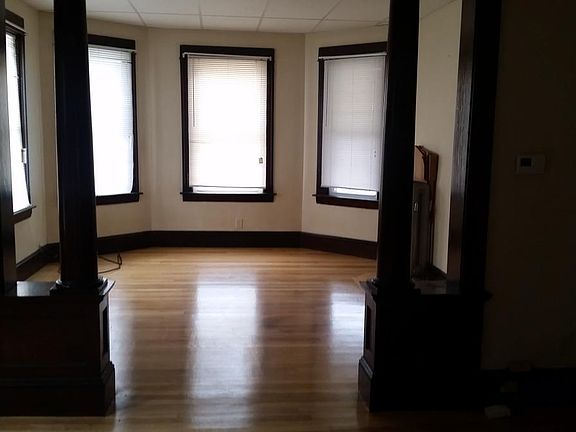 2 floors, 2 Kitchens, 2 Living rooms, dining room, 2 baths, 4 bedrooms, large apartment, washer/dryer hookups in basement. Heat and utilities not included, uses gas for heat and hot water. We collect 1st/Last/and Security Deposit, plus a $25 lock change fee