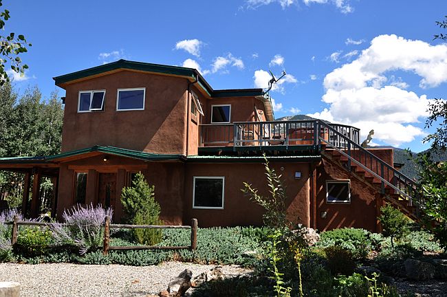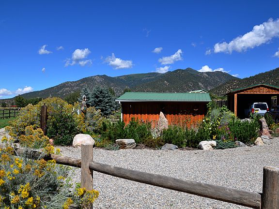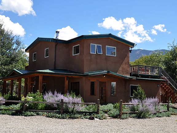 Gorgeous, lush, pastoral 1.79 acres with surface water rights and the acequia madre running along one edge of the property. Beautiful trees! Lush grass! The views of El Salto from this home are unparalleled! 2047 square feet, 2 bedroom, 2 baths. Welcoming, wrap-around portal. Dramatic entry. Great room design with open kitchen, dining area and living room. Cozy family room with office nook or studio? Versatile floor plan! You will love the views from the upstairs bath, deck and hot tub. Sitting room/library off upstairs bedrooms. Quality, carved wood doors. Easy care tile floors. Beautiful, long driveway. Large open pasture. Attractive 2 car carport. Freestanding 235 square foot shed. Furniture is negotiable.