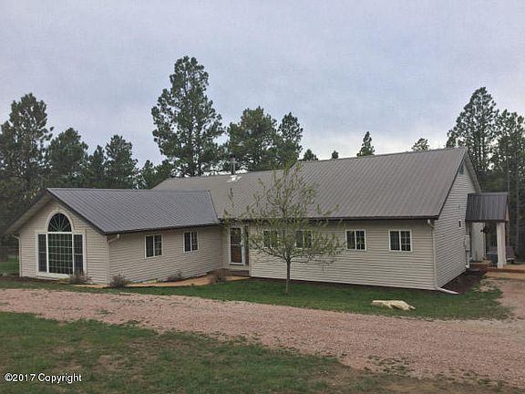 Country living in beautiful Wyoming! On or off the grid-generator connected to kick on when power goes out-has its own 500 gal propane tank. No zoning or covenants. 30+ min to Gillette, 20+ min to Sundance and Devil's Tower & 10+ minutes to Keyhole State Park. Lots of public land nearby for hunting & recreation! Nestled in the pines and a lot of turkey & deer. Absolutely beautiful home with custom faux finish throughout. One level living with an open floor plan. Spacious master bedroom with large walk-in closet and amazing master bath. New high efficiency furnace and AC. 3-500 gal owned propane tanks-only fill once in the summer for best rate with company of your choice. Wood burning fireplace with fan-excellent heat! Heated over-sized garage. Heated shop.