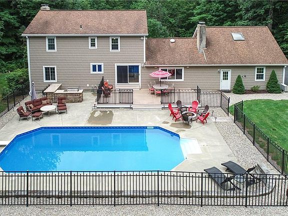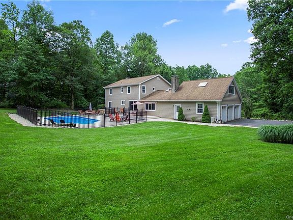 Welcome to the prestigious Sleepy Hollow Estates subdivision. This 5 bedroom, 3.5 bath colonial offers a stunning in-ground pool. Hardwood floors and crown molding. Gourmet kitchen offers stainless steel appliances, electric stove top, double oven, newer refrigerator, dishwasher, and granite counter tops. Open floor plan from kitchen into the family room with fireplace. Large living room features 9 ft ceilings with wood burning stove. Formal dining room, plus bonus bedroom on the first floor which can also be used as a home office. The master bedroom has a fireplace, spa bathroom with programmable heated floors, walk in closet, plus bonus room in the master which can be used as a second home office. Large finished basement with surround sound speakers, projection screen, and pool table all included. Close to I-84, 65 miles to Grand Central NYC.