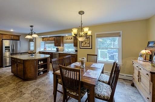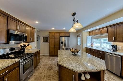 - Kit Dscrp: Dining Area, Countertops - Stone/Granite/Solid, Cabinets - Upgraded, Kitchen Island, Stainless Steel Appliances, Open Floor Plan, Recessed Lighting, Remodeled, Exterior Access