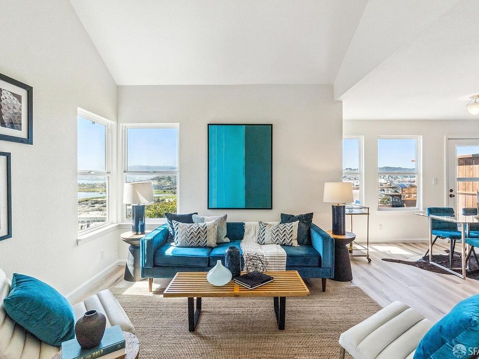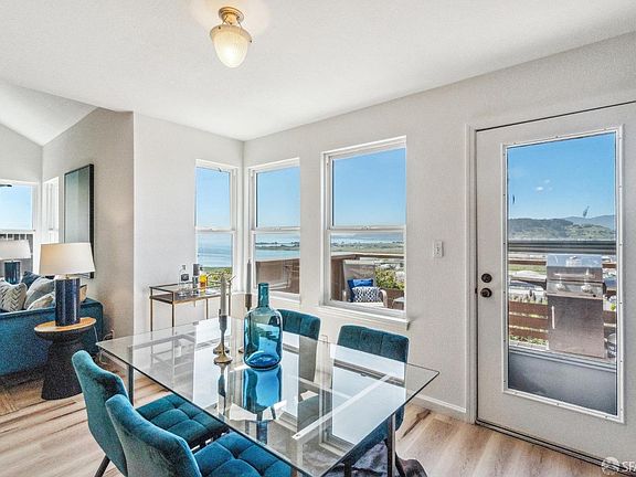 Two-level house-like townhome in private gated community. South facing and detached on three sides, the home is flooded with natural light, with unobstructed incredible views to the Southern Hills, Candlestick Point and the Bay! Quiet serenity perched at the crest of a Bayview district hill. Ideal floor plan features an expansive open Liv/Din experience on the lower level, with soaring vaulted ceilings & fully penetrated views, along with walk-out deck, powder room & interior garage access. Gorgeous new simulated wood floors deliver designer flair and practical livability. Private upper level living yields 2Beds, the primary with stunning southern views & large walk-in closet, along with full bath featuring double sink, and laundry. Skylight and new modern carpeting deliver fresh, lux living with comfort & style. Large garage offers storage potential, while the long driveway allows off-street parking for two additional vehicles! There is also guest parking adjacent to the home. Private gated community perched atop a knoll in Bayview = unbeatable value, in a private, secure, and serene setting, with unbelievable water views, great light and the convenience of multiple vehicle parking. Welcome home! Proximate to public transport, Third St corridor & area freeways!