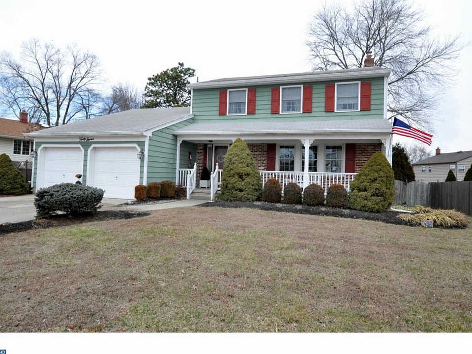 Welcome home to this beautiful Traditional home in the much sought after neighborhood of Brush Hollow. Image your summer days on the Full front porch which leads to the bright foyer with hard wood floors throughout. Spacious formal living room and dining room. Large eat in Kitchen has newer cabinets and counter tops. Freshly painted Kitchen and Family room with new carpeting, beamed vaulted ceiling, sky lights and custom cabinetry, there is a gas fireplace and full brick wall, and wet/bar sink. Off the family room are the powder room and freshly painted and newly carpeted Laundry room. Upstairs are 4 large bedrooms with hardwood floors in every room. Master bedroom with master bath has newer fixtures and the main bathroom is completely brand new and up to date. Basement is partial finished with built in closets for lots of storage. 2 car garage and nice fenced in yard. All this and a one year Home warranty . Highly rated school system, close to shopping, fine restaurants and major highways for a short drive to Philadelphia and surrounding shore points.