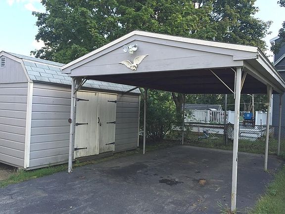 Cape style home near UMass Lowell with 4-bedrooms, laundry hookups, fireplace living room with gas insert, paved driveway with carport, and shed.