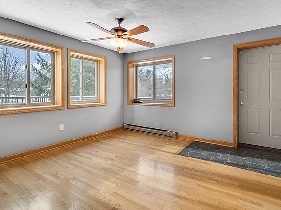A versatile home just outside the Village of Dryden with plenty of room to spread out. This home has a very open feel with a lot of communal space that can be dining, formal living or hang out space. A nice sized kitchen with option for eat-in area boasting loads of counter and cabinet space, and a deck just off the back for your grill. Two bedrooms and full bathroom on the main level and a bonus area that could be a library or home office space. In the finished basement, kept as warm as you want with the wood burning stove you'll find another two rooms and full bathroom. Anderson windows with a transferable warranty, an oversized 1 car attached garage, a second deck over the garage and almost 2 acres. All outside the Village, but still close enough to bike/walk.