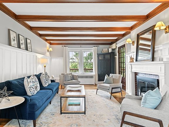 - Features: Beamed Ceilings, Flooring - Hardwood, French Doors, Deck - Exterior, Exterior Access, Wainscoting, Crown Molding