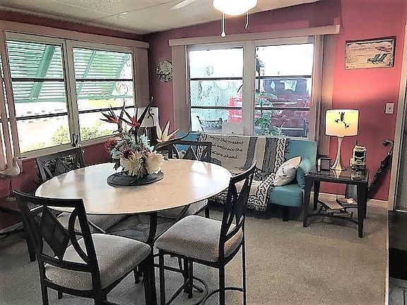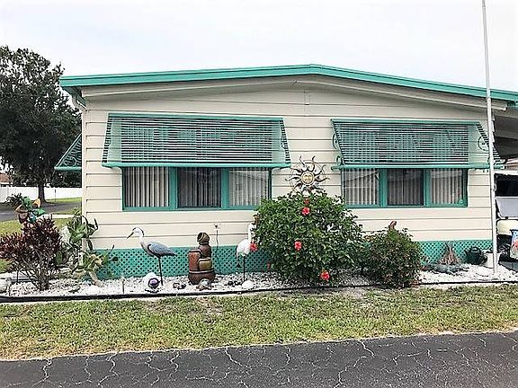 JUST LISTED Partially Furnished - $54,995 This is a large home with 1,632 square feet and an enclosed lanai giving you an additional 229 square feet of entertaining space. The home sits on a corner lot with no neighbors on one side. The enclosed lanai is very cute with a beach theme and colors. It is cooled with the main air conditioning ad an extra window unit for that jump start for the warm days in the summer. The kitchen is a very bright white with a grey trim. The appliances are newer bright white and the microwave is a built-in and only 1 year old. The kitchen has a rich cherry glossy laminate floor. There is a new moveable island for staging your dinner or entertaining. There is a reverse osmosis filtering system in the kitchen. The dining room is just of the kitchen and has the tropical feel. The built-in cabinets hold all your collectables or entertaining items. You could easily have a table to seat six of your best friends. The dining room has carpet as well as the rest of the home other than the kitchen. There are new ceiling fans in most rooms that carry the beach theme and colors. The front den is a nice getaway room for you and your guests. The arched opening into the dining makes a nice pass thru for drinks and snacks. The main archway into the living room makes a very large entertaining area. The living room and den will make you feel relaxed and at home. The guest bath has that warm beach feel of the tropics. The vanity, lighting and mirror are all new. The guest bedroom has a walk-in closet and a large double door mirrored closet, your guests have plenty of room. The master suite is large enough for a king bed easily. The tropical feel flows to the master bedroom and bath. The master is very comfortable and cozy. The Vanity area is separate from the shower area and has a really cute vanity. There is a large laundry room off the enclosed lanai with tons of storage shelving. Behind the laundry and storage is an area for a shop, craft room or a man-cave. You decide how to use this bonus space. The roof has a membrane roof-over and has been coated 2 years ago. The central air conditioning has been regularly checked and taken care of. The lighting in the home is all LED. ACT FAST & CALL TODAY!! Don't forget to ask about the FINANCING available on this home. Coach House is an age qualified resort community of manufactured / mobile homes. The Coach House has 2 Recreation halls - one attached to the pool area with pool tables and ping pong. A very nice relaxing pool overlooking the lake, 4 fishing ponds, an exercise room, laundromat, work shop for the residents, Boat & RV storage for just $25 per month, shuffleboard and lots of clubs and activities. The park has a very warm community feel. The lot rent in The Coach House is based on the homes' location. Very low rates for this type community that is so well maintained!! Not only does the monthly rent cover all of the amenities of the community listed above, it also covers almost all other monthly expenses such as; water, sewer, trash pickup, all property taxes, lawn maintenance. . .pretty much every monthly expense except electricity and internet. The current lot rent on this home is estimated at $492 per month.