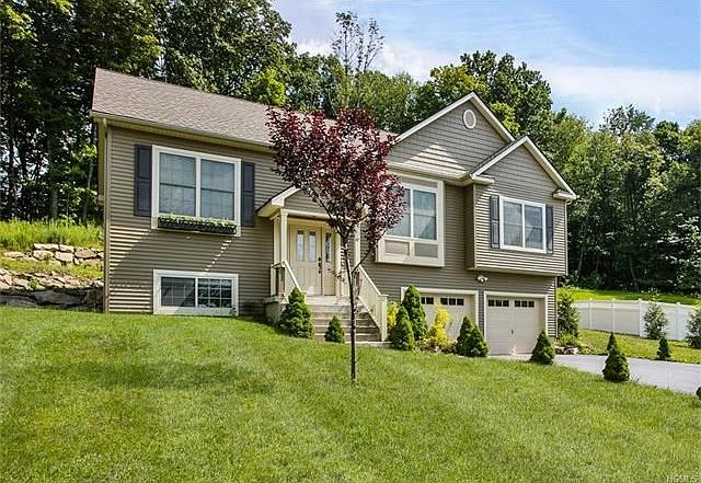 Gorgeous 4 bedroom contemporary raised ranch built in 2011 located on a lovely cul-de-sac homesite with privacy and views. Outstanding features include hardwood flooring throughout first level of home, volume ceilings, central air conditioning, piping for future central vac, & municipal sewer. Upgraded features include an entry foyer w/ skylight, living room with wood burning fireplace, kitchen with granite countertops & custom cabinetry, & master bedroom suite with tray ceiling & master bath with double vanity, whirlpool tub & stand up shower, spacious secondary bedrooms, & family room in lower level of home. Energy efficient features include double paned windows & three zones of heat. Beautiful backyard offers an oversized deck, mature trees, privacy & rock walls. Located in the award winning Monroe Woodbury School District and only 46 miles to Manhattan and 17 miles to NJ. You will love to call this home.