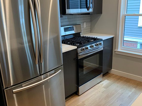 Newly renovated luxury condo on the Bike Path for rent in Somerville. Less than 10-minute walk to Davis Square, red line, grocery stores, shops, restaurants and cafes. High-end kitchen with stainless steel appliances, 5-burner gas stove, microwave, dishwasher, fridge and disposal. Open concept living/dining room area. Light and bright bathroom with new vanity and tiling throughout. Private back porch facing the Davis Square bike path. Washer/dryer in-unit. Central heat and central AC. Additional storage in-basement. Parking on-street by permit. No pets please. Available NOW. First, last, security and brokers.