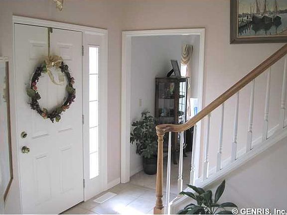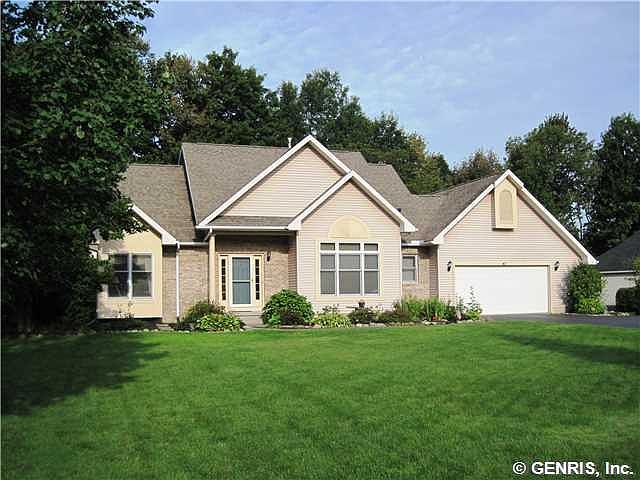 Pleasure you will treasure! Lovely home with great features like 1st floor master, gas fireplace in family room, 2 story foyer, eat in kitchen w/island, formal dining and so much more! you will love the pro finished basement not included in sq. footage. Back of house is private with deck/hot tub overlooking your woods. 2nd floor loft den might have 4th bedroom potential. Poured bsmt.walls. Furnace & A/C only 4 years old, Hot water heater 5 months old. Roof is 14 years old. Some new carpet. Attractive Pittsford Mailing address area of Henrietta. A special home.
