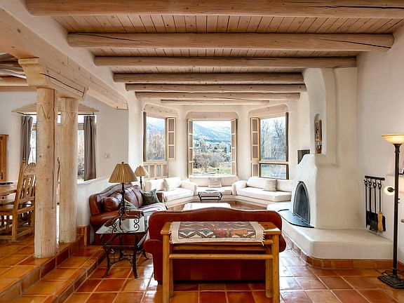 Fantastic investment or spacious family home in the very desirable Los Altos subdivision. Privacy abounds at the end of the cul-de-sac wtih unobstructed and incredible views of El Salto, Taos Mountain and the Taos Mesa. Custom Edelman adobe home with beautiful Pueblo style touches...oversized window seats, saltillo tile, carved wood beams, gorgous tiles and cabinets. Upstairs "apartment" with full bath, separate sleeping area and possible galley kitchen and exterior entrance. Currently a successful short term rental property offering sleeping for 10 and a strong rental history and portfolio, see guest review in associated documents! Newer appliances and roof maintenance completed Summer 2023. Year-round indoor swimming pool and tennis court at Los Altos Member Clubhouse. Incredible location between Taos Ski Valley and the charm of Arroyo Seco. Seller financing options available! Seller will provide 2 year home warranty for extra peace of mind! Call Debbie with any questions!