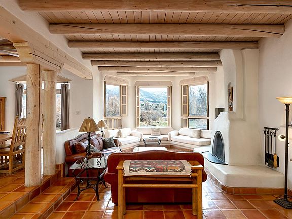 Fantastic investment or spacious family home in the very desirable Los Altos subdivision. Privacy abounds at the end of the cul-de-sac wtih unobstructed and incredible views of El Salto, Taos Mountain and the Taos Mesa. Custom Edelman adobe home with beautiful Pueblo style touches...oversized window seats, saltillo tile, carved wood beams, gorgous tiles and cabinets. Upstairs "apartment" with full bath, separate sleeping area and possible galley kitchen and exterior entrance. Currently a successful short term rental property offering sleeping for 10 and a strong rental history and portfolio, see guest review in associated documents! Newer appliances and roof maintenance completed Summer 2023. Year-round indoor swimming pool and tennis court at Los Altos Member Clubhouse. Incredible location between Taos Ski Valley and the charm of Arroyo Seco. Seller financing options available! Seller offering $50,000 cash at closing toward renovations, upgrades, etc. Seller will provide 2 year home warranty for extra peace of mind! Call Debbie with any questions!