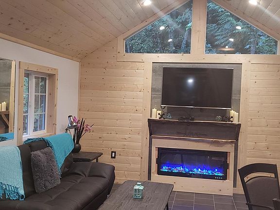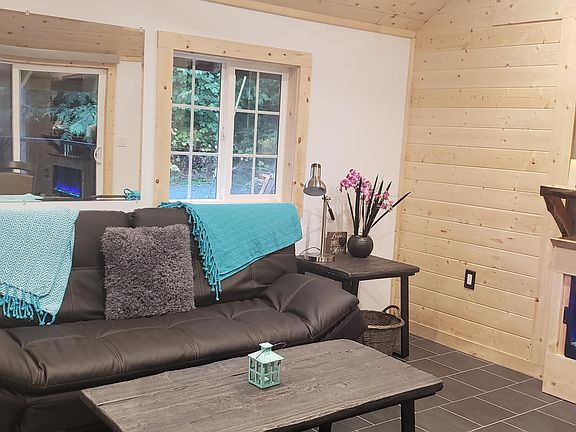 Small living made large! Handcrafted wood and custom designed space for perfect roomy feel. Wooded near Olympic National Park and Ocean Straits, Forest trails across the way, and only 10 minutes to Port Angeles and Victoria Ferry. Enjoy indoor fireplace, BBQ on the outside deck, or take a walk on a nearby trail in the Olympic Forest. It has a 1 bedroom (King bed) sleeping loft and a pull out sofa. The house is owned by our Elwha campground that is just a short walk up from the house. Because you are our Elwha guest, you also will have access to all our amenities. We have a complimentary garden, laundry room, complimentary DVD's, pet sitting (by donation), Cabana, outdoor games including a small basketball court, and a small gift store for last minute needs or souvenirs. Fully Furnished, owner pays electric, Garbage, water