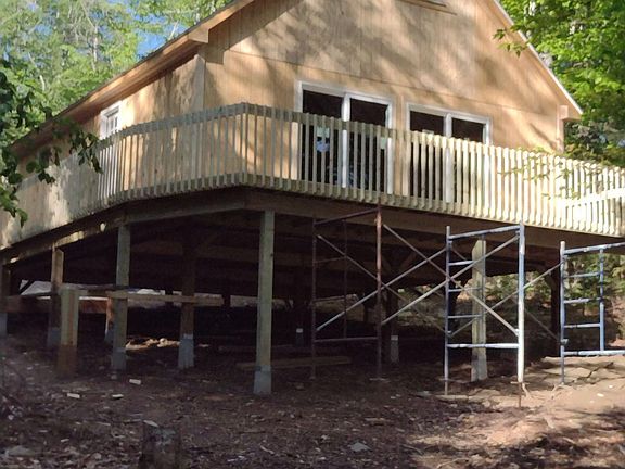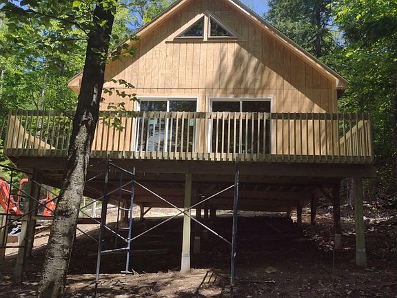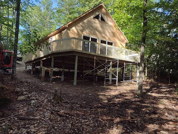 New water front house, nestled in the woods, over looking desirable Big Indian Lake. One of the last available water front sites in this quiet subdivision. Large deck with wonderful views of the gently sloping land down to the lake. 2 bedroom, 1 bathroom with a loft framed out unfinished interior. Shell of a house has been built, interior has been framed awaiting someone to finish it.