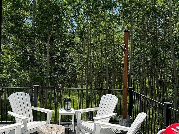 - Exterior features: 5 acres of Aspen trees, Electricity not included in rent, European Bathroom upstairs, Gas not included in rent, HOA and in desirable Silverheels Neighborhood, Water included in rent, Well water with full house water filtration system, walk to National Forest - 1 mile away