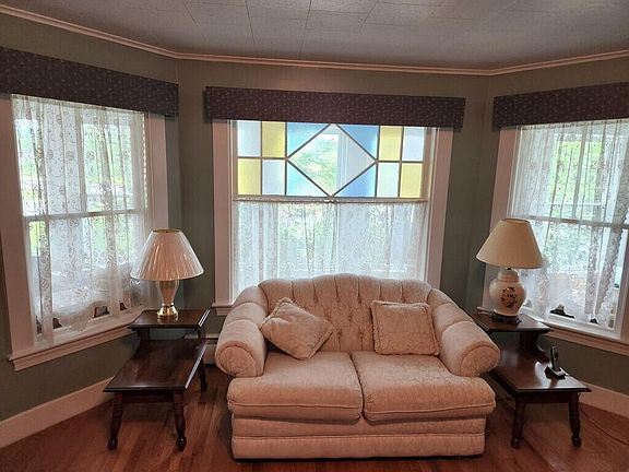 This home has it all! Hardwood floors, stained glass windows, an enclosed sit in porch with walk up heated steps. The wrap around front porch gives you the peace of relaxation while enjoying Main street scenery. This home has been in the family for many years with a multitude of past and present uses due to its convenient and visible location. A two car detached garage, a one car attached garage, an outdoor entertainment area, stone fire place and sitting area that a home buyer dreams about! Walk into this beautiful home and feel the character and charm. As you enter the home there is an open dining area, large living room each with hardwood floors. The kitchen is off the dining room with a side room for all your baking and storage needs. The staircase is open with exquisite woodwork leading to an open landing to three distinct and different style bedrooms. The first bedroom has lots of sunlight and hardwood floors, the next bedroom can be used as a den to work from home, and the primary bedroom is large, roomy and spacious to fit your king size bed while enjoying the garden style tub right in your bedroom. Located within walking distance to shopping, the schools and town amenities. Heat pump. On corner lot. Come take a look and see the endless possibilities!