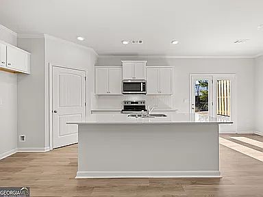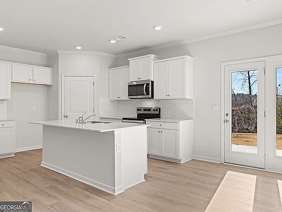 This beautifully designed two-story townhome offers 3 bedrooms, 2.5 bathrooms, and 1,877 sq. ft. of modern living. The open main level features a spacious family room with an electric fireplace, flowing into a well-appointed kitchen with a center island, granite countertops, subway tile backsplash, shaker cabinetry, and stainless steel appliances. A dining area opens to the back patio, perfect for indoor-outdoor living. Upstairs, the primary suite includes a large bedroom, en suite bath with separate tub and shower, dual vanity, and a walk-in closet. Two secondary bedrooms, a loft, full bath with dual vanity, and upstairs laundry complete the home. A two-car garage adds everyday convenience. Photos are not of exact unit. 12 Month Lease Term