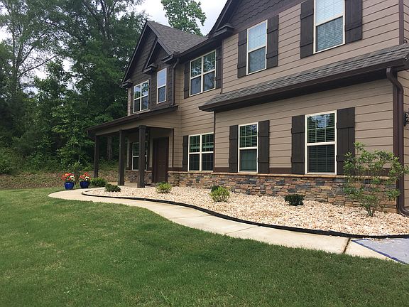 Stunning 4 bedroom, 2.5 bath built in 2017 on quiet, level 2 acre lot on cul-de-sac street. Sit and enjoy an expansive outdoor stone and granite kitchen area with a wooded view. Outdoor patio includes a built-in fireplace, granite picnic table, 5 burner grill, extensive counter space, fire pit, outdoor speakers, and tv mount. Beautiful trees provide shade for the kids' tower playset. Bright, open floor plan featuring hand scraped hardwood floors, fireplace in the family room with a tv mount above the mantle, large eat-at island in the breakfast room, built-in bench with coat rack near the garage entry, and 2" faux wood blinds (not pictured) throughout. Giant master bedroom with remote controlled electric fireplace. Master bath has his and hers sinks, garden tub with separate shower, and two walk-in closets. TONS of storage space with over-sized pantry, large laundry room with custom counter space, and overhead storage shelves in the garage. Fiber optic internet available!