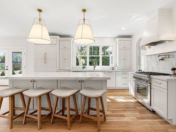 Newly imagined and fully rebuilt, this luxury 5-bed, 6 bath home in Wenham sits on .92 acres. This custom-built home offers two primary suites—one on each level—each with spa-like baths and custom walk-in closets. Main level includes contemporary kitchen with Thermador appliances, quartz countertops, custom cabinetry, pantry with built-ins, and sun-room. Second level offers a spacious primary suite with custom walk-in closet, soaking tub, and oversized tiled shower, three additional bedrooms, full baths, and laundry. White oak hardwood floors throughout and radiant heat in baths. Partially finished basement ideal for gym or media room. Exterior features Hardie board siding, paver patio, three garage bays, professional landscaping. Utility highlights include 4-zone propane forced hot air heating and central air, Rinnai tankless hot water heater, and new septic. Sophisticated design, spacious layout, and a sought-after North Shore setting.