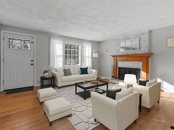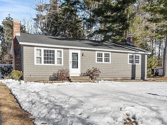 There are so many reasons to love 47 Maplewood Drive! Easy one-level living floor plan, with lower level bonus rooms, laundry, workbench and storage. The beautiful bamboo floors greet you as you enter, flow through the living room, hallway and 3 bedrooms. The living room with fireplace and lots of natural light is a cozy place to gather. The eat-in kitchen has outside access through a side door and slider to the backyard. The bedrooms are ample size and move-in ready. The bonus room in the basement with wood stove offers more gathering space and still plenty of storage room available. The yard is adorned with lilac trees, a fenced gardening area, pergola, firepit area, and storage shed - ready for your use and enjoyment. The roof is brand new, just installed in Jan 2024 and includes a one-time transferable warranty. Sought-after Timberlee Park is a wonderful neighborhood convenient to restaurants, shopping, trails, schools, town buildings, Rt 119 and not far from NH. Location is key!