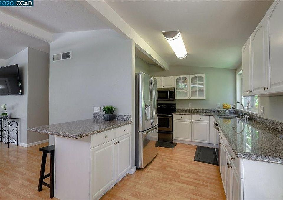 Location location location! Don't miss this well cared for and updated single story rancher on a large lushly landscaped lot both front and back. The property features new kitchen appliances with granite countertops, dual pane windows, new luxury vinyl plank "wood" floors, new bathroom sinks and cabinets, central HVAC, solar, fireplace, new washer/dryer, 2-car garage and more. New lighting throughout house. Closet built-ins. This property is an entertainer's dream come true with spacious backyard, covered patio with outdoor lighting, gas fire pit, children's play area, pear tree, extra storage, and side yard access. Uniquely located within close proximity to parks, trails, freeway accesses, and 1.5 miles from BART and downtown, yet quiet, private, and serene. Excellent schools, desirable neighborhood on cul de sac. No pets, no smoking of any kind. Kitchen: Granite Counter, Dishwasher, New Electric Range/Oven with air fryer, New refrigerator, New Garbage Disposal, new washer/dryer. Renter pays all utilities and waste disposal. Owner pays for gardener. No smoking of any kind, no pets.