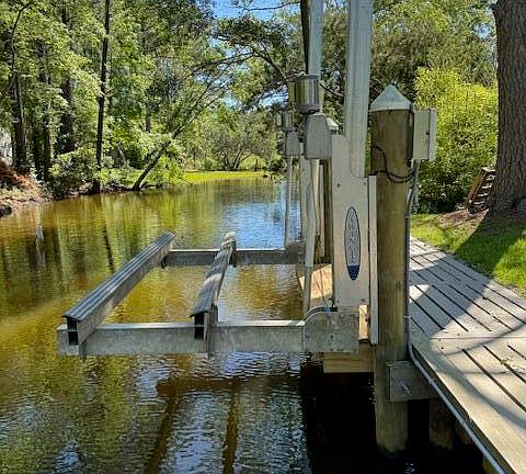 A peaceful, getaway which you will not want to leave. Tucked away off the beaten path, newly updated inside and with newer dock and bulkhead. Ready to use and relax. Head out from the canal to Dawson Creek and then on to the Neuse River if you choose. Whether for fishing or tubing with the family, everything you will need will be at your fingertips. 3 outdoor buildings with electrical for all the fishing gear and toys. A community boat ramp to launch the boat and boat lift for storage. Inside you'll find the perfect layout for full time living or a the perfect getaway. 2 bedrooms with den/office as well. So many updates. Most furnishings can convey so that you can move on in.