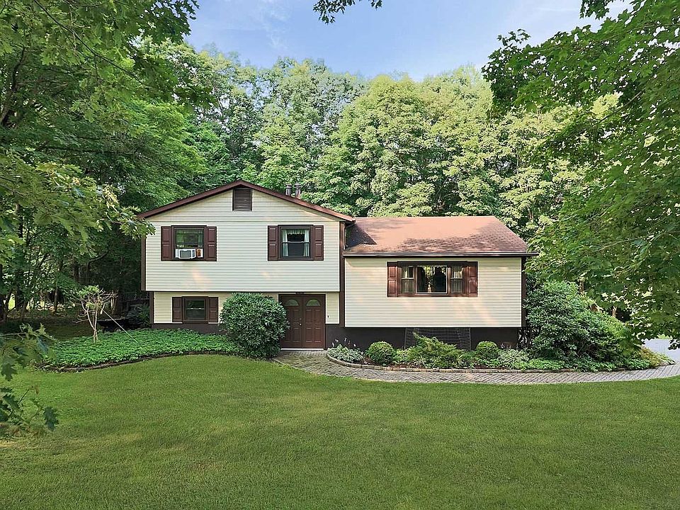 You will love this well cared for Split.Large entry foyer leads to family room w/Wood stove to heat the whole house.Step up into the LR/DR & Eat-in kitchen. Master BRw/Full Bath, add'l 2BR's & full bath.Slider doors lead to Picturesque yard, deck & above ground pool to make this home perfect. Completely private Wooded backyard and lower level deck for quiet mornings or evenings to relax.3 heat zones. taxes are listed without star. exemption will be approx $917.Proper self closing gates will be installed on deck.