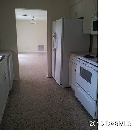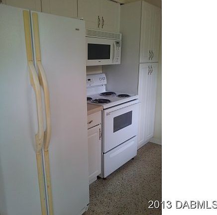 Beachside Wonder! 3 bedroom 2 bath features newly installed air conditioning unit and new paint of neutral color. There is also terrazzo flooring throughout, walk in closet in master bathroom, double closet in one of the secondary bedroom, ceiling fans in each bedroom, kitchen pantry and built in microwave. Enjoy the nice ocean breezes from the privacy fenced back yard. Small pet negotiable with $250 non refundable fee. This property has a manual garage door and does not have an icemaker. All information intended to be accurate but is not guaranteed.