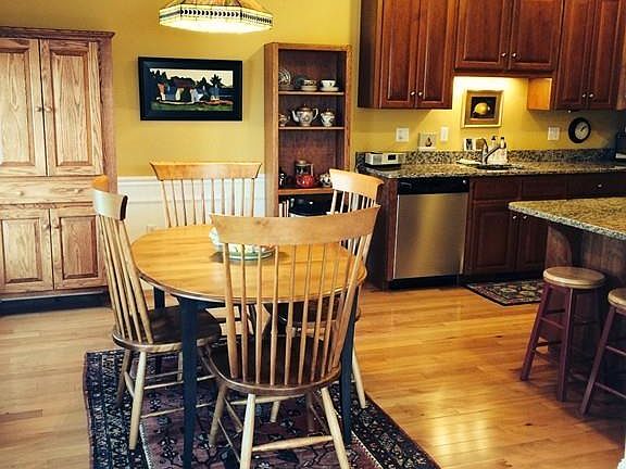 Stunning END unit in over 55 building! Great location! Walk to restaurants, shops, train, post office, town hall and library. Wonderful home to entertain in with first floor open floor plan, 9 foot ceilings, crown moldings, wainscoting and hardwood floors. Two walls of windows in the living room allow plentiful light and gorgeous sunsets. Kitchen features cherry cabinets, stainless appliances, breakfast bar and granite countertops. A large dining area adjoins kitchen. There are two master bedrooms (one on each floor). Each has a walk in closet, double granite sinks, shower stall. First floor has a Jacuzzi and second floor has a soaking tub. First floor laundry and half bath. Second floor has master suite, separate office area, family room (also with two walls of windows) and HUGE walk in storage area. Attached one car garage. Large basement with high ceilings is ready to be finished. Central air and central vacuum. Pets are allowed with some restrictions.