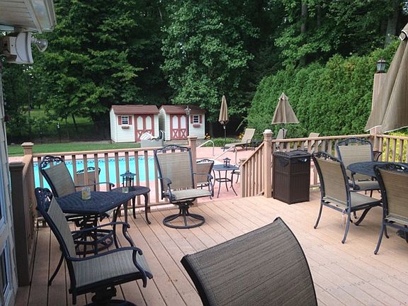 Lovely Split Level on Cul-de-sac near Wilson School.Over 3000 SQFT.LeisureRm Addition off FamilyRm. Resort-like Yard w/Deck,Patio & Heated In-ground Pool. Updated EIK & Baths. Too many extras to list! Outdoor Updates include: Anderson and Pella Windows thru-out, Vinyl Siding, Roof, Garage doors, Exterior lighting, Pool heater and filter, stamped concrete pool deck, Brick paver walkways, Landscaping and full sprinkler system, Trex style deck and two Sheds. Interior updates include Air Condition, Boiler, Two Hot Water Heaters, Tastefully designed Corian/Tiled Kitchen and Baths, Hardwood floors under carpet and recessed lighting. Included in the sale is a 50 Inch mounted television with surround sound, exterior speakers and Pool Robot.