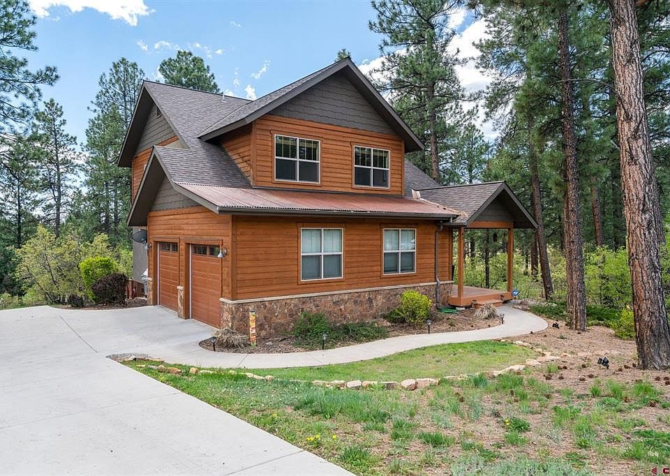 Remarkable Mongelli Custom Home located in the notable Edgemont Highlands community just outside of Durango, Colorado. Nestled into the tall pines and privacy on a .29 acre cul-de-sac lot that borders open space and miles of native walking trails for residents. Warm hardwood floors span the main level including the kitchen, living room and dining room. A tasteful fireplace is a prominent feature in the living room with rock surround and hearth with effortless access to a large covered deck surrounded by nature. The gourmet kitchen features stainless steel appliances including a five burner gas range and oven, granite countertops a separate pantry and breakfast bar seating. Natural light pours into the dining room with extended views of the serene neighborhood. Upstairs features a built-in office space with custom desk and bookcases. The oversized primary suite features a large walk-in closet and dual vanity bathroom with jetted tub. Two additional bedrooms also feature an abundance of natural light and views into this very private home on an established neighborhood road. This magnificent home has a large deck bringing the outdoors inside and creating spaces for entertaining and enjoyment. The spacious homesite is landscaped with native species and features an attached oversized two car garage. A seven foot tall crawl space provides additional storage for bikes, skis and all of the seasonal toys. Property owners and their guests have access to fishing in the Florida River as well as 200 acres of dedicated open space and hiking trails throughout the subdivision. Enjoy the ease of living in the mountains just minutes to downtown Durango and miles from local reservoirs and ski resorts.