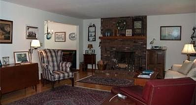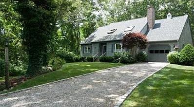 This picturesque Cape is situated on a slight knoll and is extremely appealing. It is larger than it appears. One enters a foyer that is open to the living room with raised hearth fireplace. There is a dining area with sliders to a deck which overlooks the well landscaped, private yard. A first floor bedroom has a connecting bath and the laundry. Upstairs a sunlit family room, 3 bedrooms and a compartmented bath complete this charming home. Situated on a dead-end street, it is private and has access to the bike path. A perfect location!