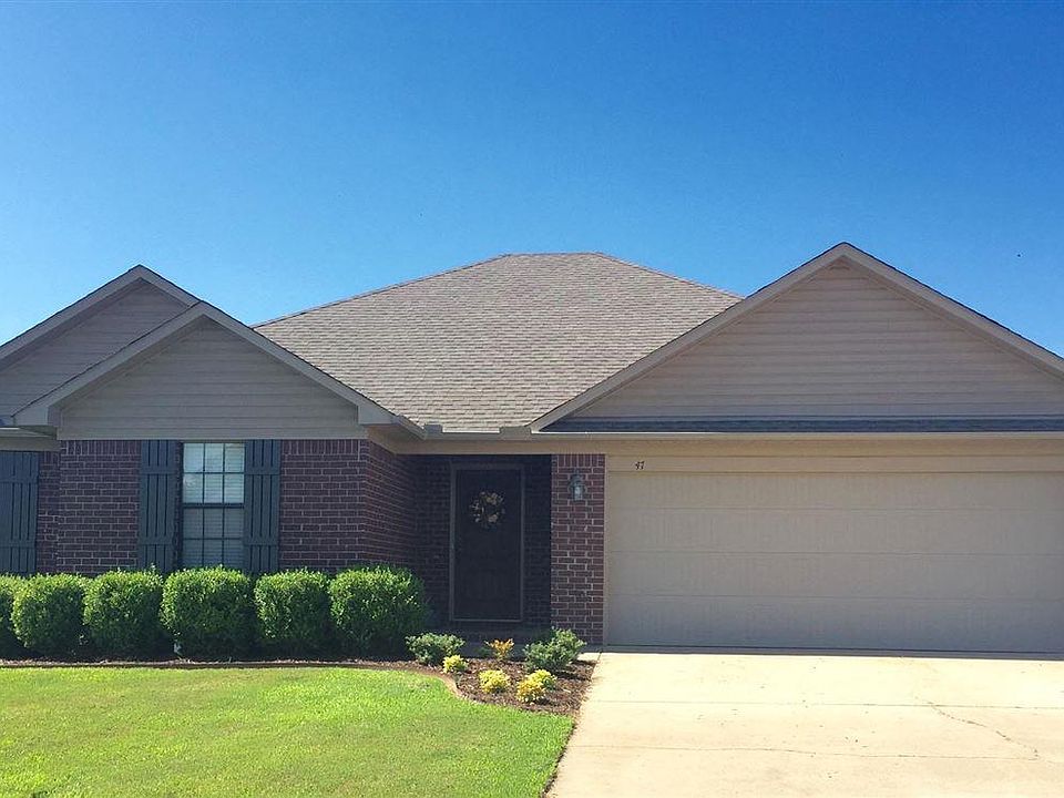 This 3 bedroom, 2 bathroom home offers an open, split floor plan. The living area is open to the kitchen and dining area. The master bedroom is located off of the living area in the back of the home and the 2 extra bedrooms are located in the front of the house. This home has stained concrete floors and new carpet in the bedrooms. The home has new paint throughout. The custom cabinets are built by Grants Cabinets. Walk in closets in the master and kids rooms.