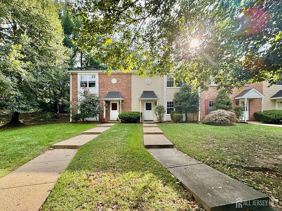 Spacious, north-facing townhome located in the highly sought-after Society Hill East community. The main level features an open-concept living and dining area with beautiful bamboo flooring, along with a convenient powder room for guests. The updated kitchen is perfect for everyday meals or entertaining. Upstairs, you'll find two generously sized primary bedrooms, each offering a private full bath. A convenient second-floor laundry room adds to the home's functionality. Step through the sliding glass doors off the living room to a patio with scenic views, ideal for relaxing or hosting guests. Community amenities include an outdoor pool, tennis courts, and beautifully maintained common areas. Prime location with easy access to Route 18, Route 1, the NJ Turnpike, Downtown New Brunswick, Rutgers University, and top medical centers. Close to houses of worship, shopping, dining, and recreational options. NYC bus service nearby and part of the acclaimed East Brunswick Blue Ribbon School District. Available September Now!