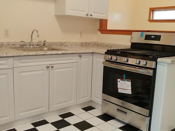 Rear find Single Family 6 blocks from Maverick Station with 2 car parking in rear side by side . Modern 4 room, 2 bedroom's that has cathedral ceilings and skylights. Master bedroom with french doors leading to deck. All good size rooms. Brand new stainless steal refrigerator and a 5 burner gas stove with skillet. New gas hot water heater & 5 year old gas FHW heating system. 11 year old roof. Deleaded Home lead Cert in hand. Close to everything you need or want to do.
