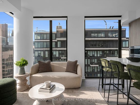 Upgraded kitchen cabinetsFloor-to-ceiling windowsSweeping city viewsModern open-concept kitchenSleek centre islandSpacious primary bedroomStylish powder room