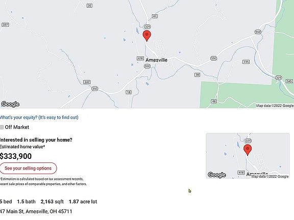 Nice propety located on about 2 full acres ... 5 Bed Home with a HUGE 15,0000 sq ft warehouse located at 47 Main St Amesville Ohio 45711 about 70 miles southeast of Columbus ... cash only sale.  REO property ...Its priced way below market value and FIRM.