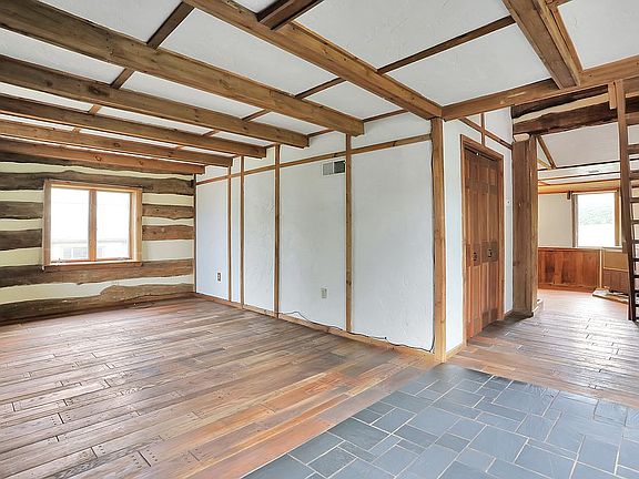 Loaded with character and charm, this historic cottage dates back to the early 1800s and is a unique find! Boasting original hardwood flooring and distinctive design features throughout, you will be delighted by this special property. From the beamed ceilings to the log and chinking walls, to the outbuildings which include a carriage house and a summer kitchen, you will feel like you took a trip back in time! Both outbuildings are equipped with electric and the summer kitchen features an operating fireplace. Highlights include a spacious cedar closet, a jetted tub, a sitting room, spacious lawn with a patio and a newer roof (6 years old) The inviting front porch is brand new and offers the perfect place to relax after a long day. Situated near schools and downtown amenities, this home just awaits its new owner!