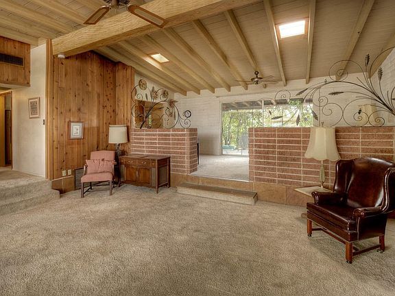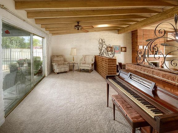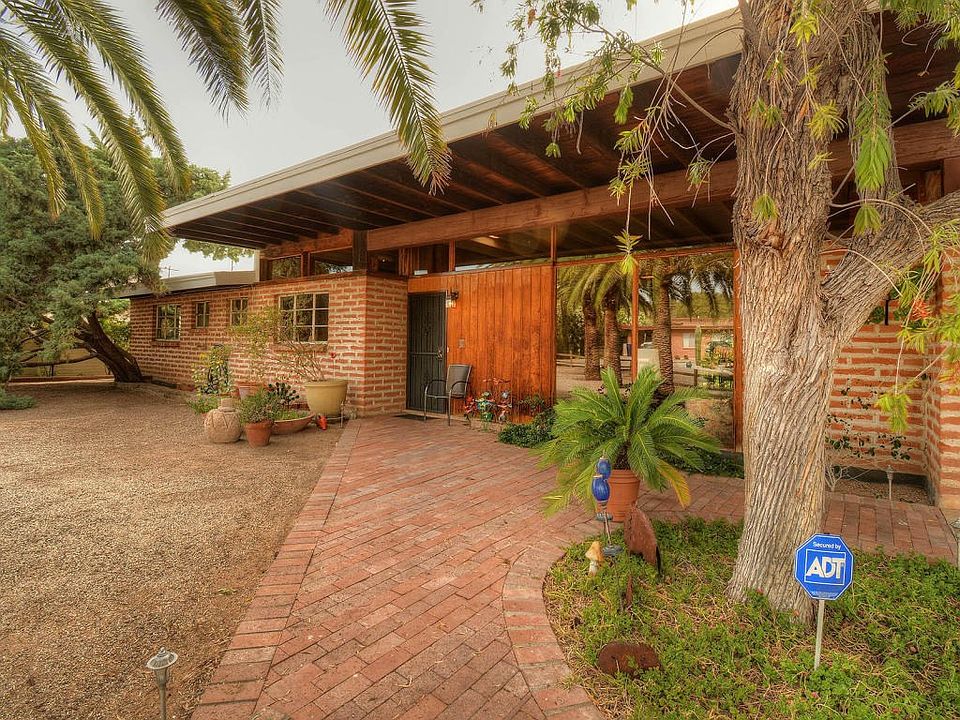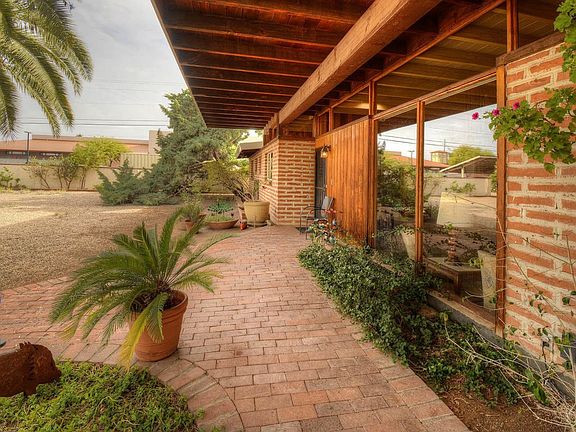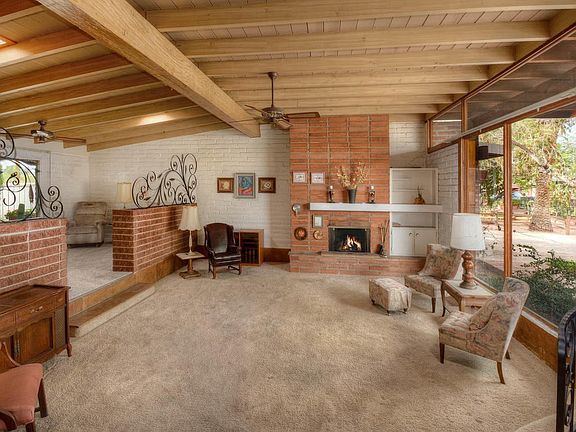Mid-Century Modern brick charmer tucked at the end of a cul-de-sac in the heart of Central Tucson, tons of curb appeal, high wood beamed ceilings, extensive wood paneling, dramatic fireplace with both formal & informal dining spaces. The 4th bedroom has a private entry from the back yard, where you will also discover a deep shady porch & gated conventional swimming pool. Loved by one family for a generation, this home has so much potential in an original design that hasn't been ruined. Don't miss it!