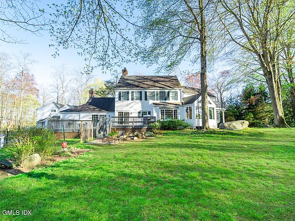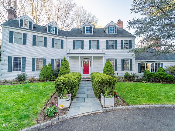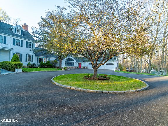 Quintessential colonial estate in serene, country setting. Privacy, privacy, privacy! Set back on 4 acres with a stream abutting the Stanwich Club. The elegance that graces you in the foyer continues throughout. Old world charm w/ modern finishes. Living & dining rooms boast wood-burning fireplaces. Eat-in kitchen w/ island & subzero appliances flows into the fabulous sunken family room w/ wood beams & FP. WFH is luxurious in the office w/ floor to ceiling windows to enjoy nature. Master bedroom suite boasts a fireplace & balcony. Sizable in-law suite w/ kitchenette adds value. 3 car garage. Enjoy the manicured gardens from the double-tier deck, in-ground pool, hot tub & patio surround perfect for entertaining dinner parties.