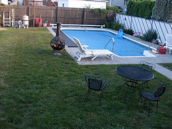 two units 1100 sq ft living space each unit with approx. 1000 sq ft of storage each unit large rooms with closets .fenced in yard with inground pool and stamped conrete quiet street