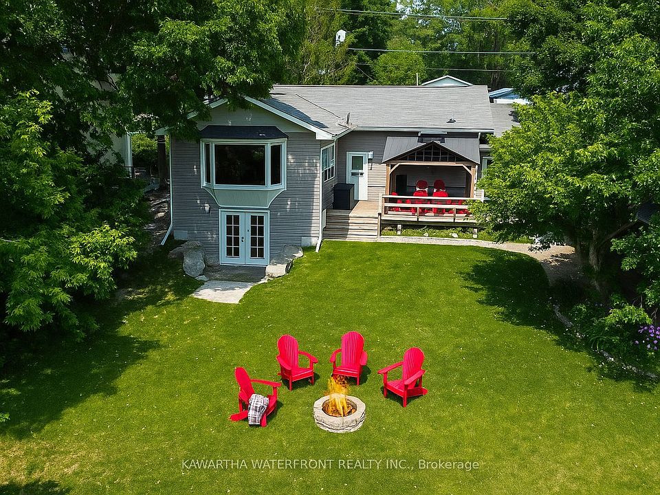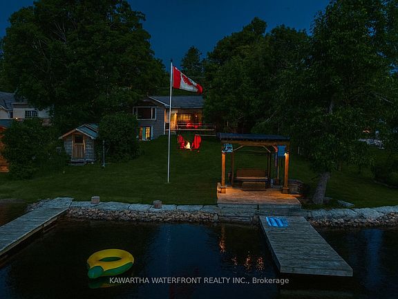 Cottage Comfort Meets In Town Convenience. Massive lakeside addition with main-level living room & walk-out recreation room on the lower leve (2015, with permit), 3 bedrooms + office, 2 bathrooms, updated kitchen, laundry/furnace rooms, Sauna for cozy winter wellness. Shoreline stabilization & armour stone (2015, with permit), Pergola retreat, lakeside storage shed & a charming bunkie for guests. Wake up to the shimmer of water just steps from your door and enjoy the magic of cottage-country living, all while keeping the comforts of town close by. This in-town waterfront property delivers the best of both worlds: Peaceful Gull River frontage with ~5 ft depth at the dock perfect for boating, swimming & water sports. Walkable convenience shops, schools, clubs, restaurants, and community events all nearby. Picture crisp fall mornings paddling calm waters, afternoons cruising into Balsam Lake via the Trent-Severn Waterway, and evenings by the fire after dining at your favourite local restaurant. By winter, you'll be set for sauna sessions, snowy views, and fireside nights in your own four-season retreat.This home or cottage is more than just a property its a lifestyle. A rare blend of nature and neighbourhood that delivers four-season fun, year-round comfort, and endless memories waiting to be made. Don't wait until spring and regret it. Now is the time to secure your waterfront dream before winter arrives.