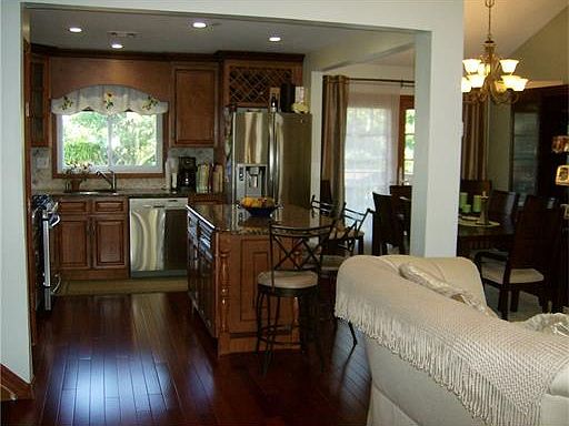 Gorgeous 4 Bedroom, 2 FB home with modern, open floor plan! Gorgeous Brazilian cherry floors thruout, kitchen has SS LG appliances, granite counters, maple cabinets, gorgeous baths, professionally landscaped, deck *and* patio, newer siding, roof and water heater. Partial finished basement with loads of potential, too.