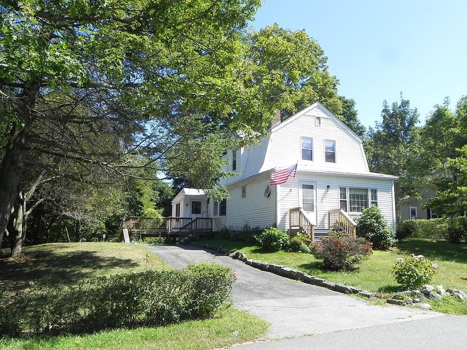 BE OUR GUEST! Touched by tradition, this solid Gambrel style Colonial was built in 1890 & is situated on a lovely 1/2 acre lot w/ fruit & shade trees that are part of the beautiful yard. Kitchen renovated in 2009 makes every square inch count..clean & uncluttered..features oak cabinets, extra storage, skylight & eat in area lrg enough for the whole family! Newer Family rm addition off the kitchen has a gas stove to warm you on those chilly evenings & slider to oversized wrap around trex deck overlooking yard. Entertaining-sized Living rm w/corner fireplace, built-in shelves & hrdwd flrs, formal dining rm, 3 bedrms w/wide pine flrs..1.5 baths. Roof stripped & re-roofed Dec 2008. New Steam Boiler 2012. Updated electric panel. 2006 Replacement windows & easy maintenance free vinyl siding. Just a little paint needed to brighten up this home. Prime location within walking distance to St John's Prep & minutes to Rt 128/95/62, downtown shops & restaurants! Includes a 1Yr AHS Home Warranty!