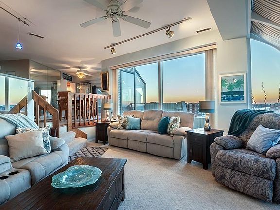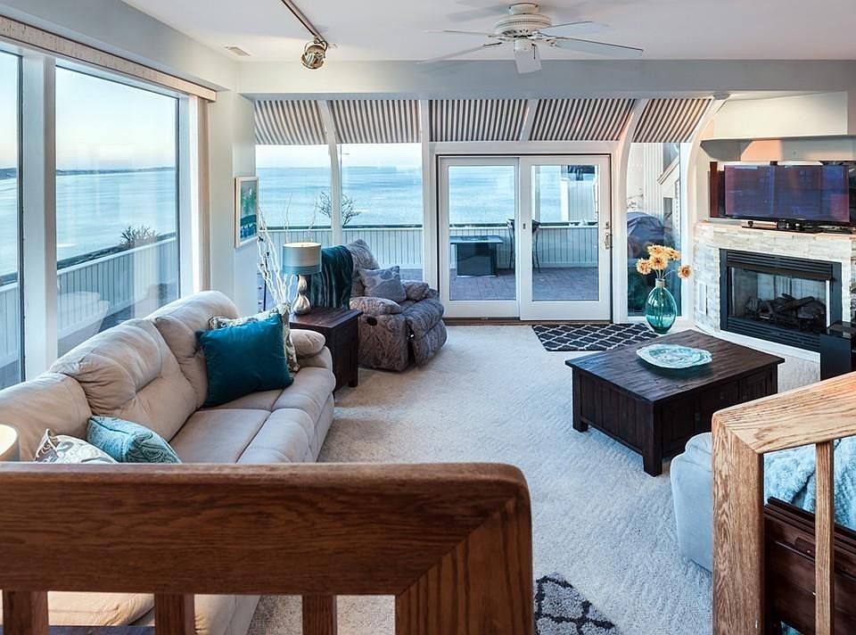 Unbelievable opportunity to own an open floorplan, corner one bedroom home with floor-to-ceiling windows and a private wraparound deck. This home boasts some of the best views on the South Shore and has not been offered for sale since 1989. The renovated kitchen overlooks the sunken living room with gas fireplace. Glass doors naturally convey itself to over 400 s.f. of Outdoor Living complete with pergola and plant-ready, private gardens bordering the deck. The oversized bedroom offers en-suite access to the bathroom complete with large jacuzzi tub. A bonus, extended area with a glass door opening onto the outdoor space is perfect for an office or study. Enjoy sparkling sunrises and dramatic sunsets year-round. This special Waterfront home also makes a great vacation retreat. Direct access garage parking, guest parking and oversized walk-in storage room complete this rare offering.