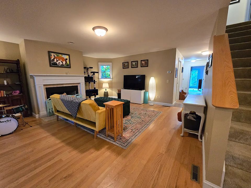 Electricity included! This beautiful home in Village Hill abuts Smith College and is an easy walk to Downtown Northampton. On the first floor is the eat in kitchen with a gas stove, refrigerator, microwave, dishwasher, breakfast bar, lots of cabinets, and granite counters. The spacious living room has a gas fireplace and gets lots of light. Also on the first floor is a half bath and the primary bedroom with en-suite full bathroom and sliders out to one of the two patios. The second floor has three bedrooms and a full bathroom. There is a full basement and an attached two car garage. Landlord takes first and security for move in (no last). Included in the rent is electricity, snow removal, yard maintenance and trash removal.