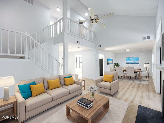 Welcome home to the desirable community of Manor at Wayside! Discover this beautifully fully renovated 2-bed, 2.5 bath Essex Townhome with a modern flair, ready for its next owner! Step into the spacious Living/Dining Room combo, complete with a cozy fireplace and soaring cathedral ceilings, where abundant natural light pours in through two sleek, newly installed black architectural window frames and sliding doors that lead to your private patio. The freshly painted interior and newer luxury vinyl flooring provide a contemporary touch, while the Eat-in Kitchen, featuring a bright bay window, breakfast nook, and upgraded stainless steel appliances, offers both style and functionality. Upstairs, two generously sized bedrooms await, including a Master Suite with a dressing area, walk-in closets and luxurious bathroom complete with a tub. Conveniently located close to stunning beaches and all the Jersey Shore has to offer, plus major shopping, dining, and entertainment options, this home is perfect for both relaxation and adventure. With access to community amenities such as a pool, tennis courts, and clubhouse, this hidden gem blends elegance with convenience. Call today and make this beauty your Home Sweet Home!