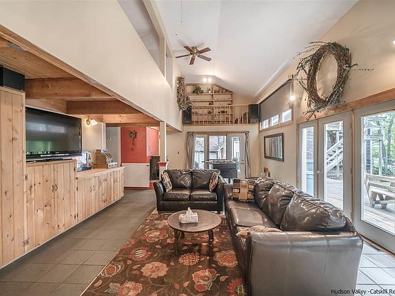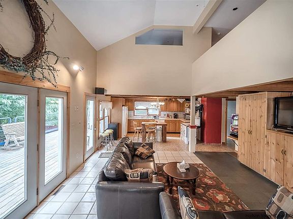 Convenient to the Village of New Paltz, Trailways Bus, NYS Thruway, Mid Hudson Bridge, Walkway over the Hudson and minutes to Metro North. Do you have more toys then you know what to do with? Problem solved with 47 Ose Rd. This Contemporary offers one 3 bay garage and one 2 bay garage (office above with heat and electric) This 2200+ square foot house is an open concept contemporary with vaulted ceilings. Country kitchen with working antique wood fired stove is open to the dining and living area with a wall of glass doors out to the deck. There is also a large pantry/utility room off the kitchen with newer wall oven for more conventional meal prep. 3 bedrooms upstairs, master with it's own bath all bedrooms are ample size with nice size closets. You can not get a more convenient location. Right up the road is a little spot where you can drop your kayak into the Black Creek and enjoy all that nature has to offer.